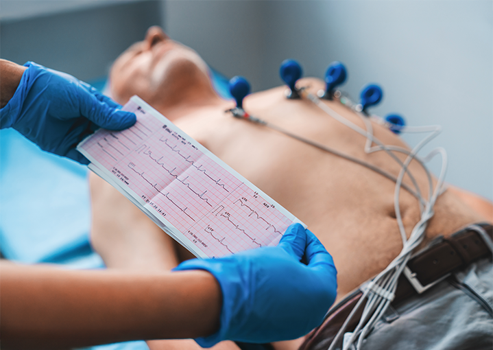 For monitoring heart rhythm and blood pressure fluctuations, we conduct Stress Echo, Holter Monitoring, Ambulatory BP Monitoring, and the Ankle Brachial Index to check for peripheral artery disease.